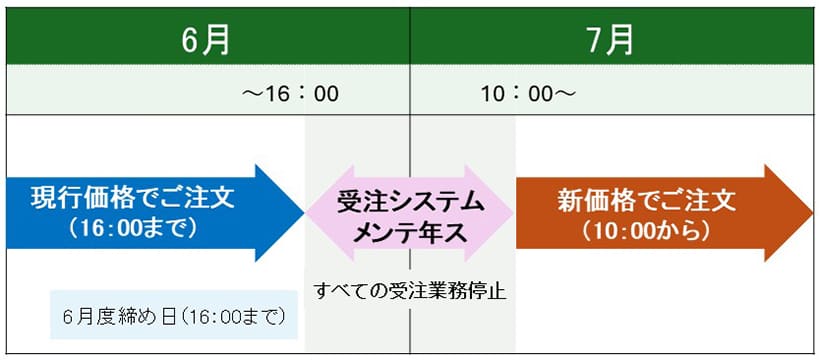 製品価格の切り替えによるシステムメンテナンスのため、6月30日(火)16時~7月1日(水)10時までカスタマーサービスおよび会員専用サイトでの新規会員登録および製品注文は停止させていただきます。